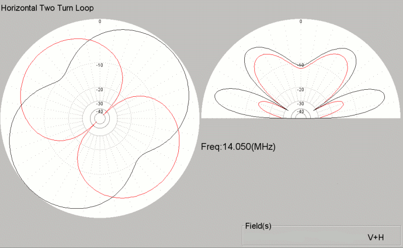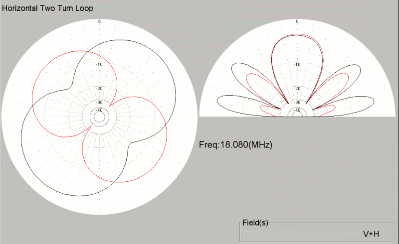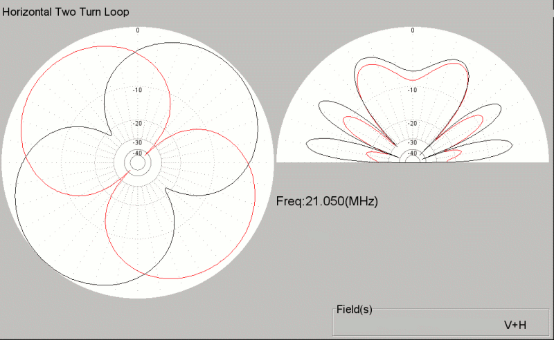 Here are the Radiation Patterns (created using MMANA) from a model of the antenna placed 20m above an ideal ground.