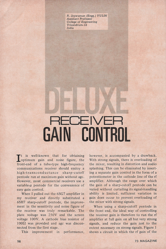 This article on HF receiver gain control appeared in the September 1970 issue of 73 magazine.