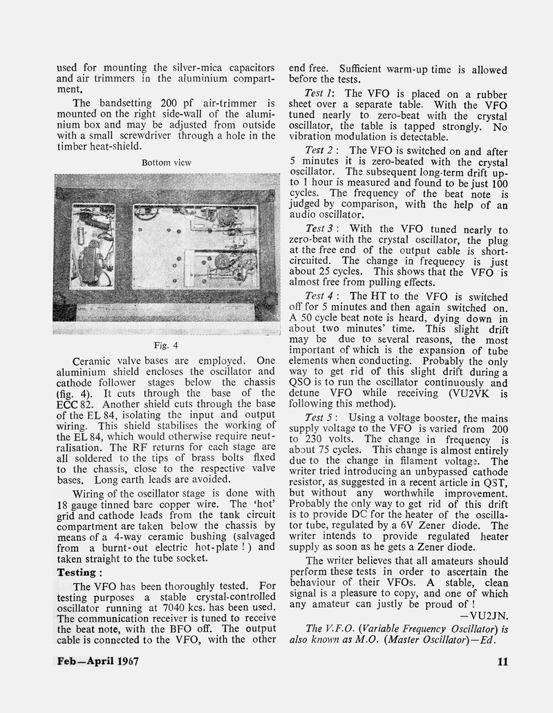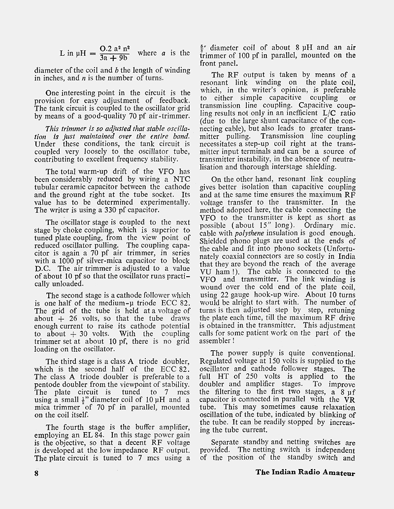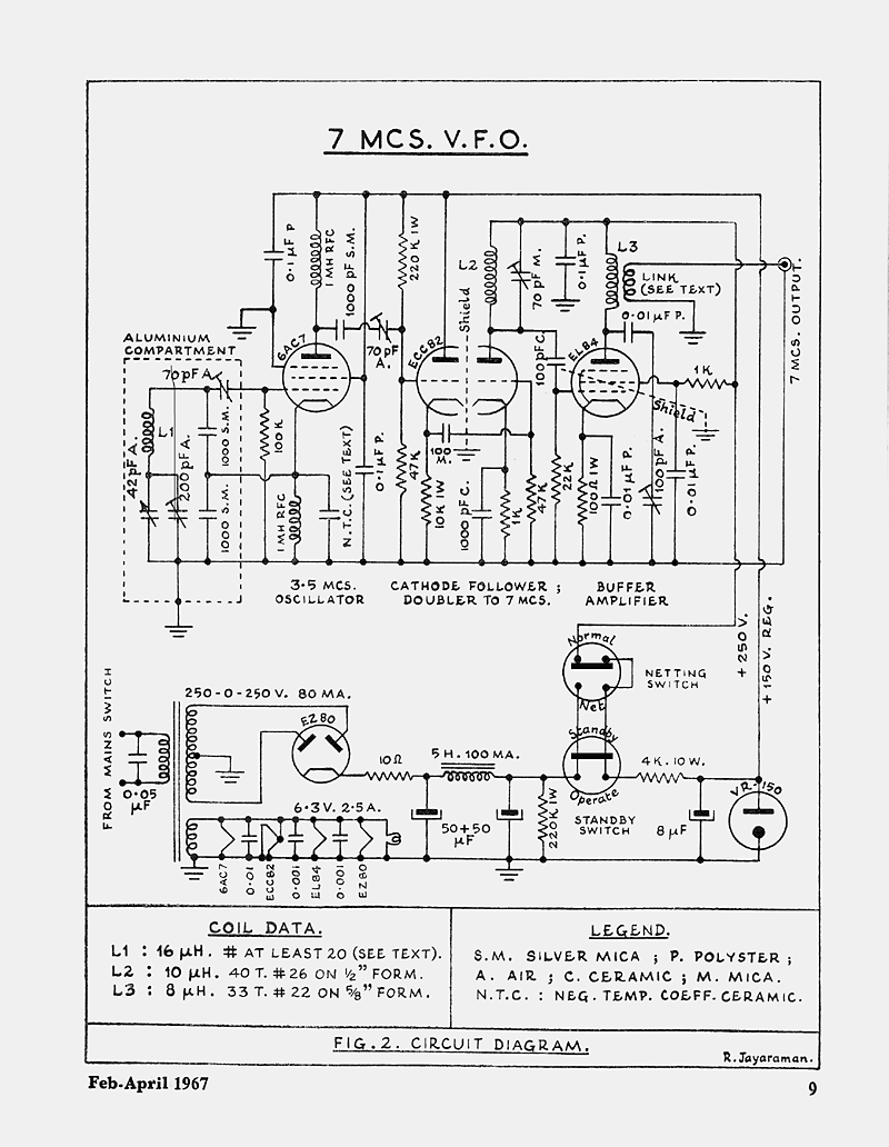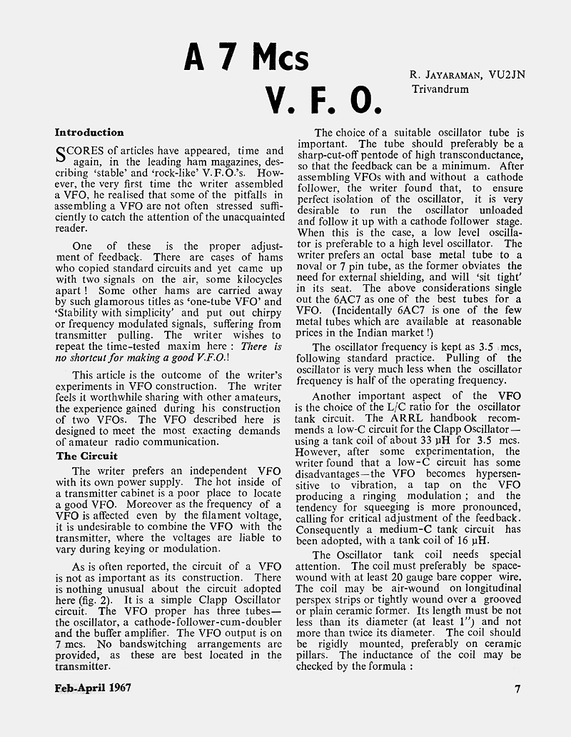 The article "A 7 Mcs V.F.O.", appeared in the February 1967 issue of The Indian Radio Amateur.