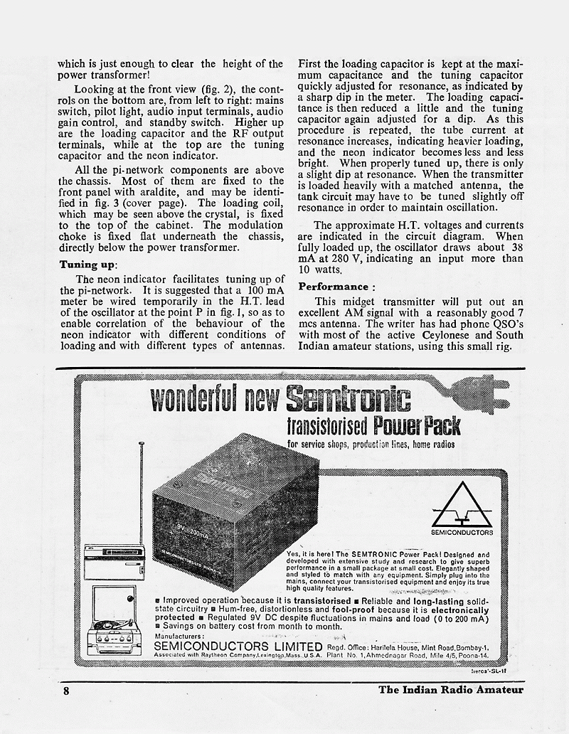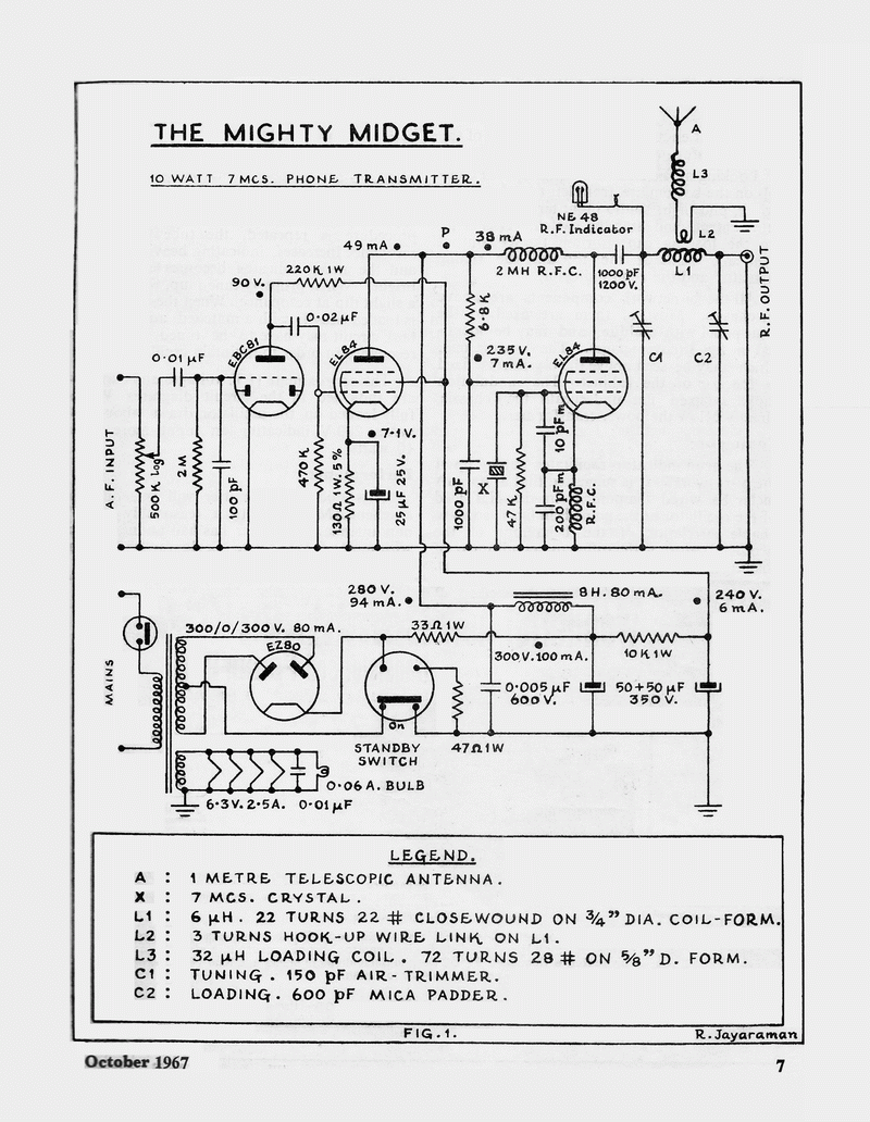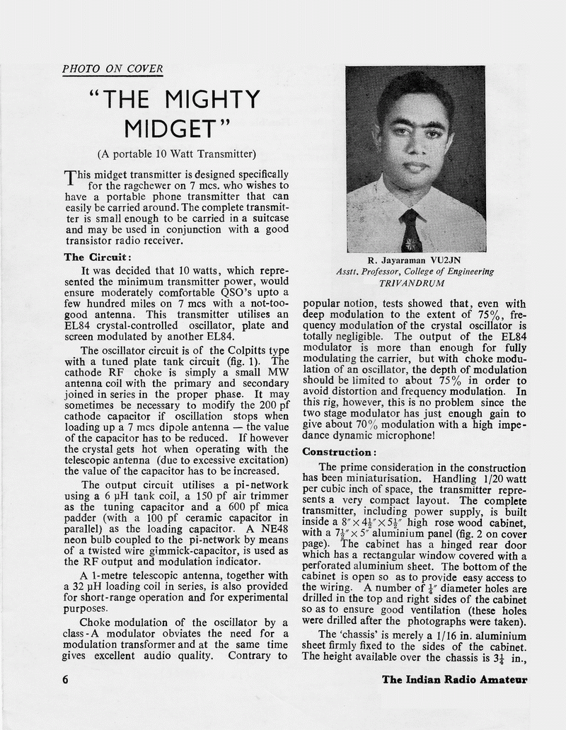 The article "THE MIGHTY MIDGET", appeared in the October 1967 issue of The Indian Radio Amateur.