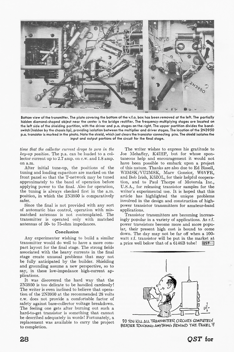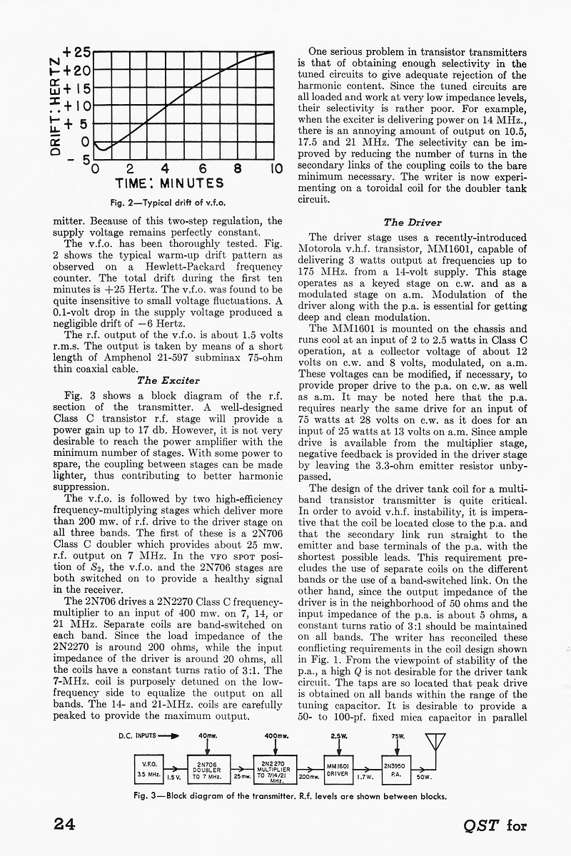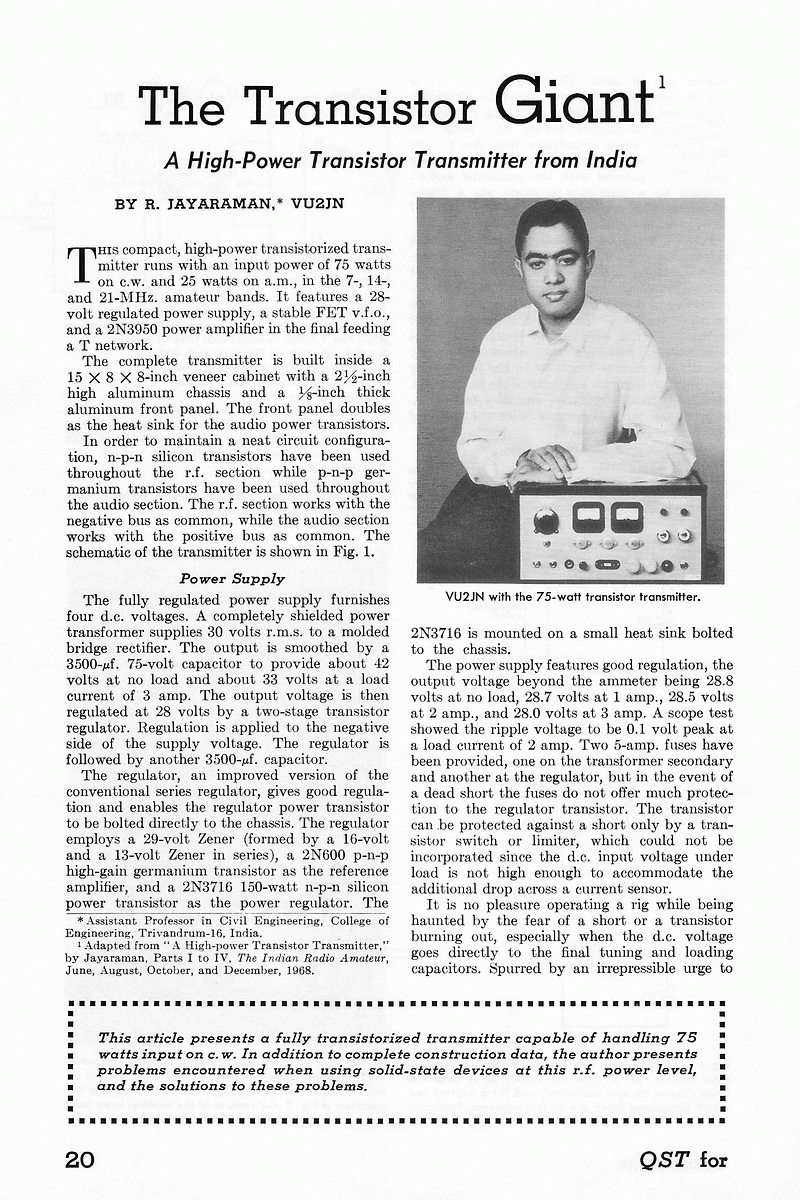 This article on a low power transmitter using transistors easily availabe in India appeared in the November 1967 issue of QST magazine.